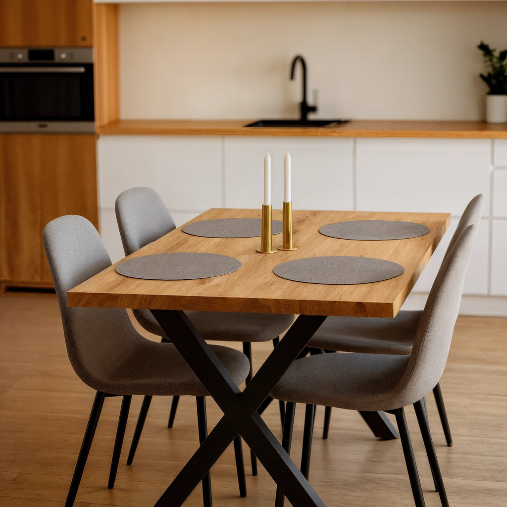 Mesele din lemn masiv de stejar sunt mai mult decât piese de mobilier. Sunt o investiție în calitate și stil, menite să reziste în timp și să creeze amintiri frumoase. Prelucrarea atentă, de la lipirea precisă până la șlefuirea perfectă, scoate în evidență textura și nuanța caldă a stejarului. Lemnul este tratat cu un ulei natural special, care nu doar că îl protejează, dar și îi accentuează frumusețea. Detalii precum marginile finisate cu grijă și cadrul robust conferă mesei nu doar funcționalitate, ci și un design atemporal, care va rămâne mereu actual.