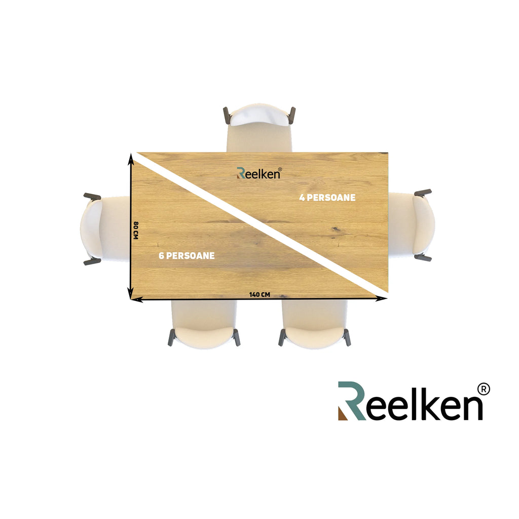 O masă din lemn masiv de stejar este perfectă pentru a aduna familia la o cină delicioasă. Suprafața sa generoasă și textura caldă creează o atmosferă primitoare și relaxantă. Această masă de la Reelken® nu este doar practică, ci și un adevărat punct de atracție în casa ta. Prelucrarea sa de înaltă calitate și lemnul masiv de stejar asigură durabilitatea și evidențiază frumusețea naturală a materialului.