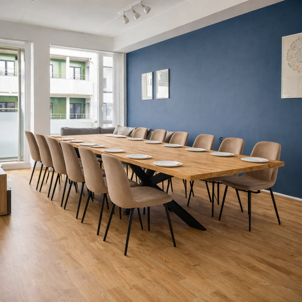 Masa din lemn masiv de stejar nu este doar pentru dining. Ea devine rapid un punct de atracție în orice sală de conferințe. Cu grosimea sa de 4 cm și aspectul impresionant, masa este perfectă pentru întâlniri productive și discuții importante. Fiecare nod și crăpătură naturală din stejar adaugă o notă unică, transformând masa într-o piesă centrală care emană profesionalism și eleganță. Aceasta nu este doar funcțională, ci și estetică, oferind un cadru perfect pentru succesul afacerii tale.